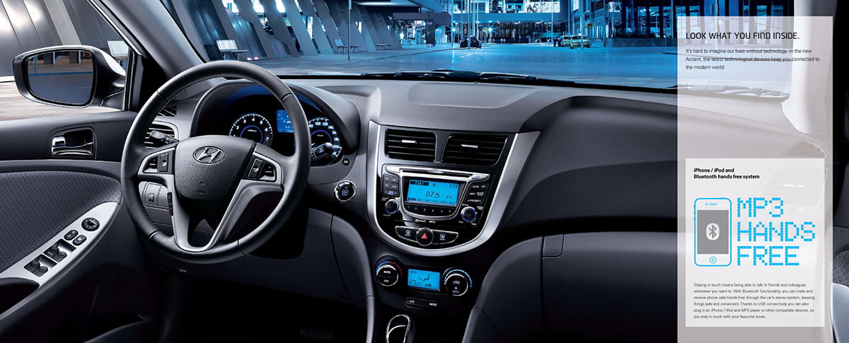 e-brochure for the Accent. Downloadable from the worldwide Hyundai dotcom site.