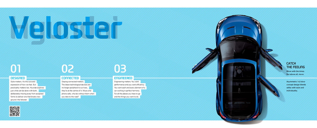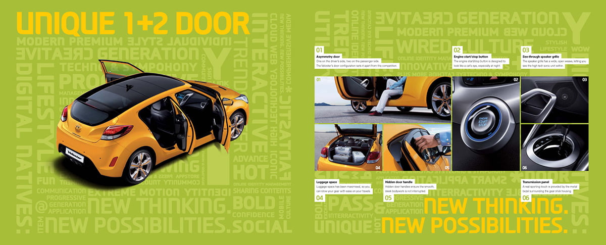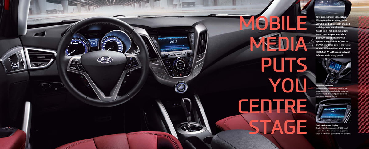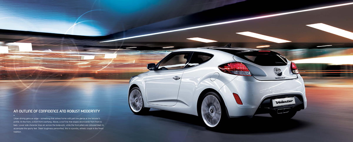 e-brochure for the Veloster. Downloadable from the worldwide Hyundai dotcom website.